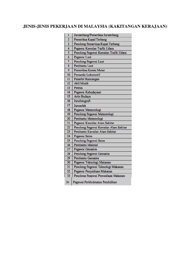 Jenis Pekerjaan Di Malaysia Fundacionfaroccr